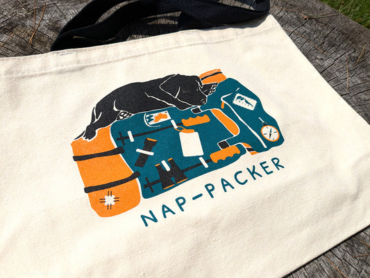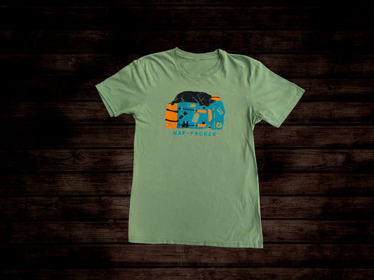 Nap-Packer Graphic Tee | 100% Organic Cotton T-shirt | Backpacking Adventure Dog