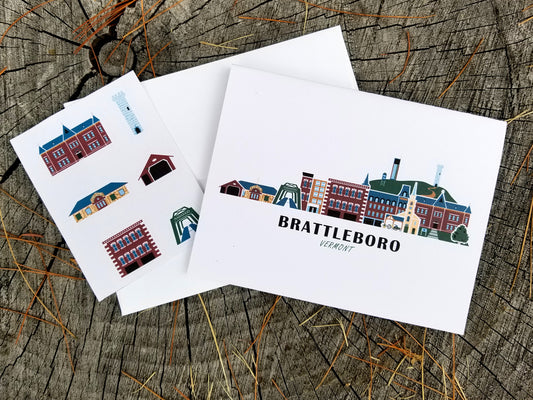 Brattleboro Vermont Cityscape | Blank Greeting Card Set
