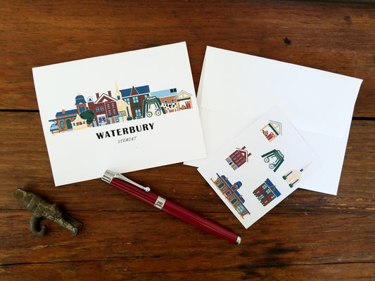 Waterbury Vermont Cityscape | Blank Greeting Card Set