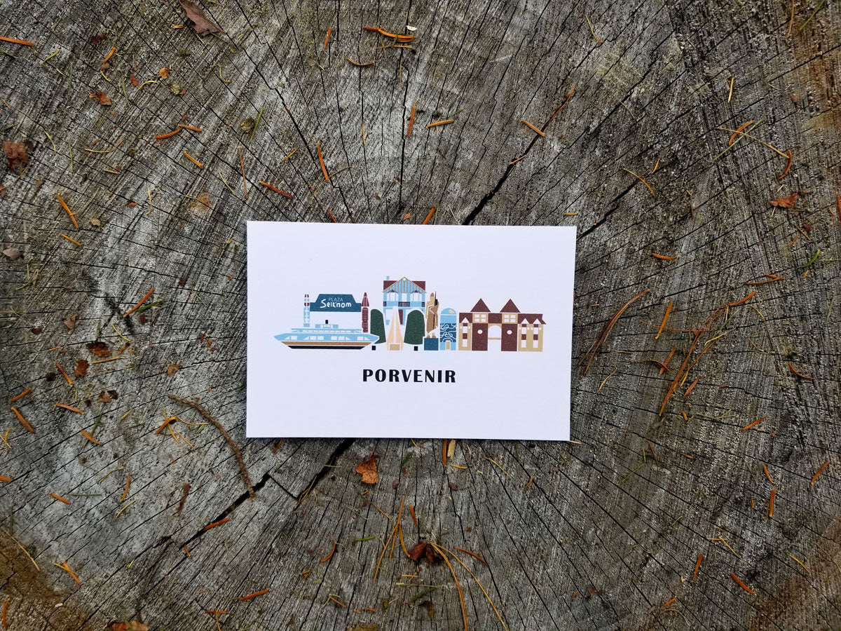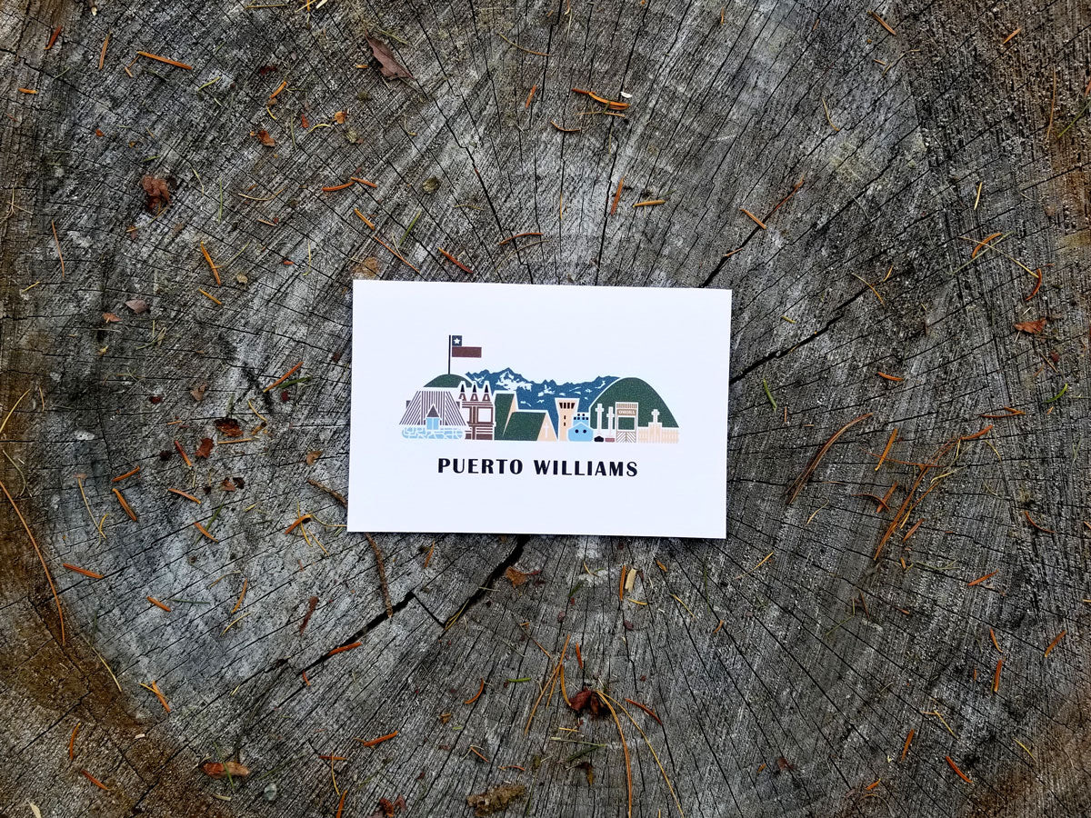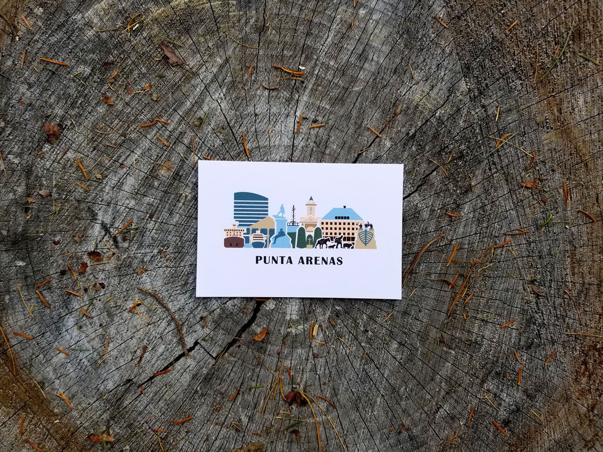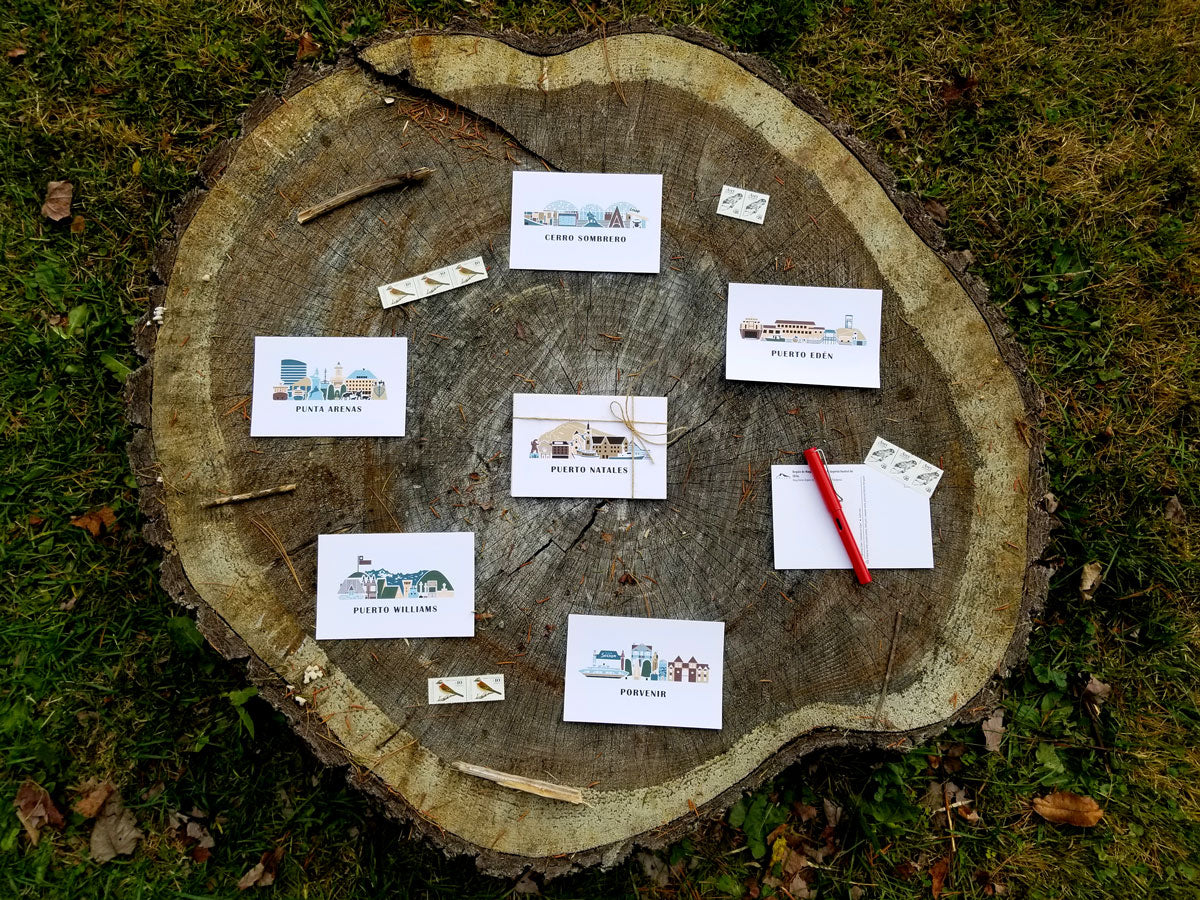 This set of 6 postcards highlights 6 iconic cities and towns of southern Chilean Patagonia. Each 4x6” postcard features minimalist, flat designs of notable landmarks, and is printed with care with thick, responsibly sourced paper.